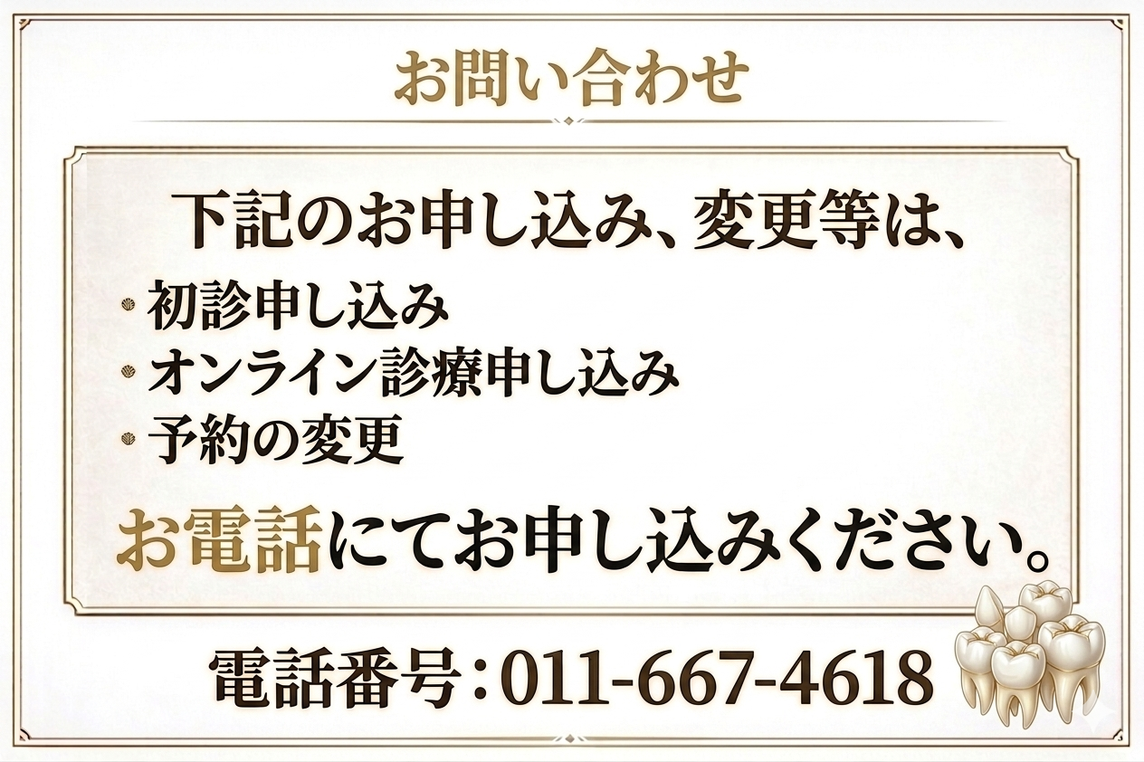 歯のお悩み、ご相談、治療のご相談は有料となります。